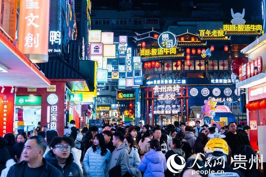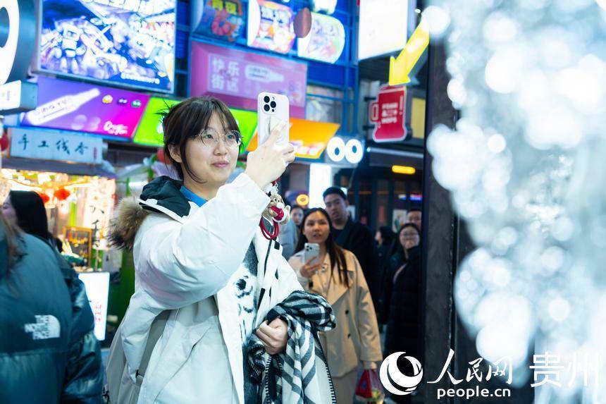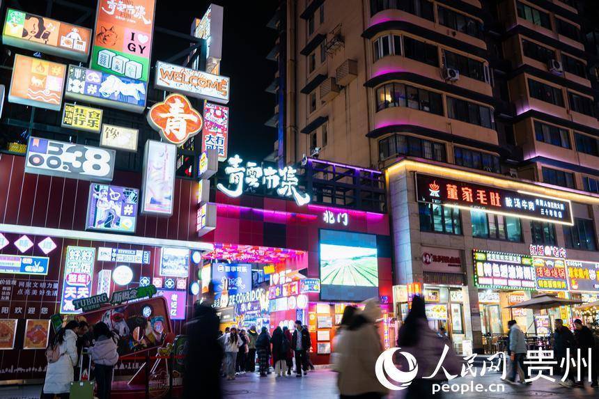 青云市集里燈火璀璨、人頭攢動。人民網 陽茜攝人民網貴陽2月3日電 (高華、陽茜)2月2日,由貴州省委宣傳部主辦的“一路黔行?爽居暢游”主題參訪活動首站走進貴陽旅游打卡地——青云市集,探尋這座城市的冬日文旅活力與市井煙火。