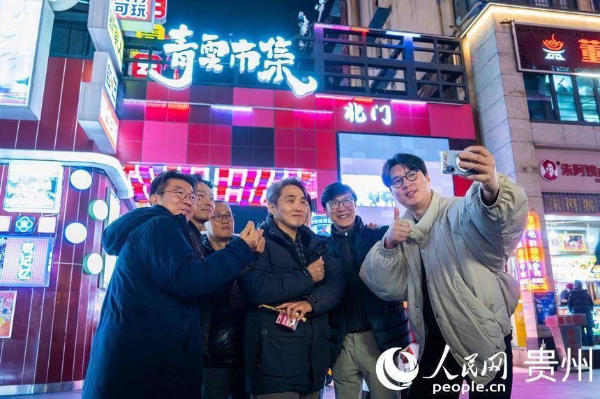 走進青云市集,街巷里燈火璀璨、人頭攢動,來自各地的游客紛至沓來,冬日旅游熱度持續攀升。地道黔味小吃店、非遺銀飾、蠟染等文創商鋪內,不時有游客細細品嘗美食或是選購伴手禮,沉浸式感受貴州美食及文化魅力。外媒記者們不時駐足拍攝,用鏡頭記錄市集里的煙火氣息與人文風情。