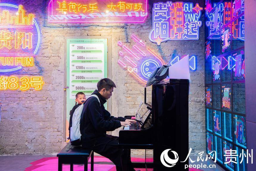 游客在青云市集彈奏鋼琴。人民網 陽茜攝